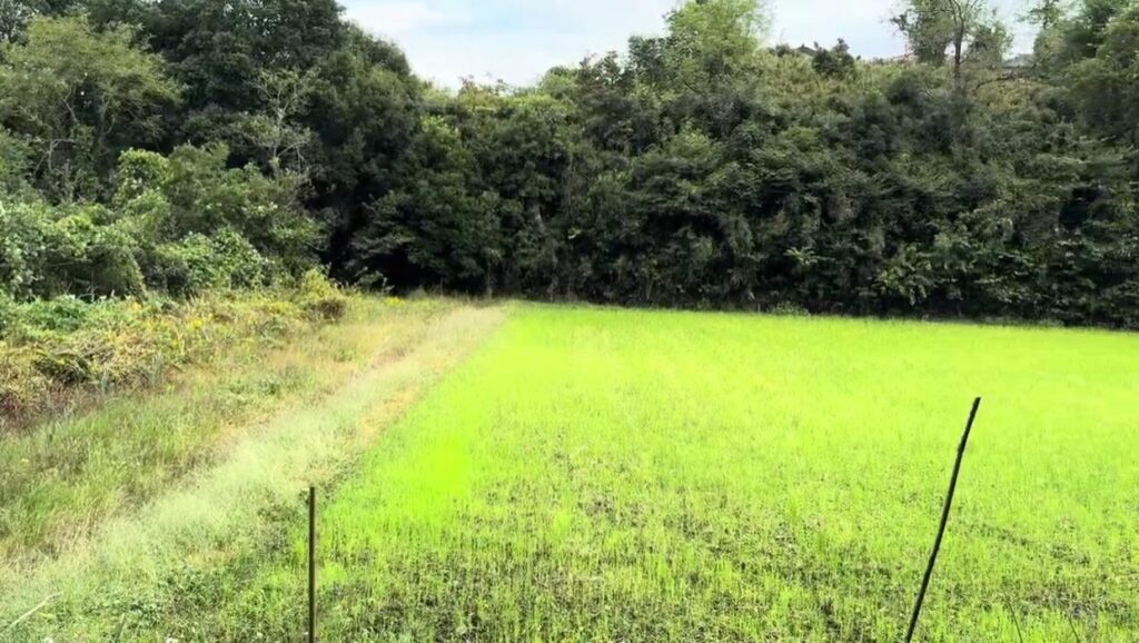 土地が細いです。正確にはわからないのですが、幅5メートルくらいで長さ140メートルくらいではないかと推測していますが、詳細はわかりません。