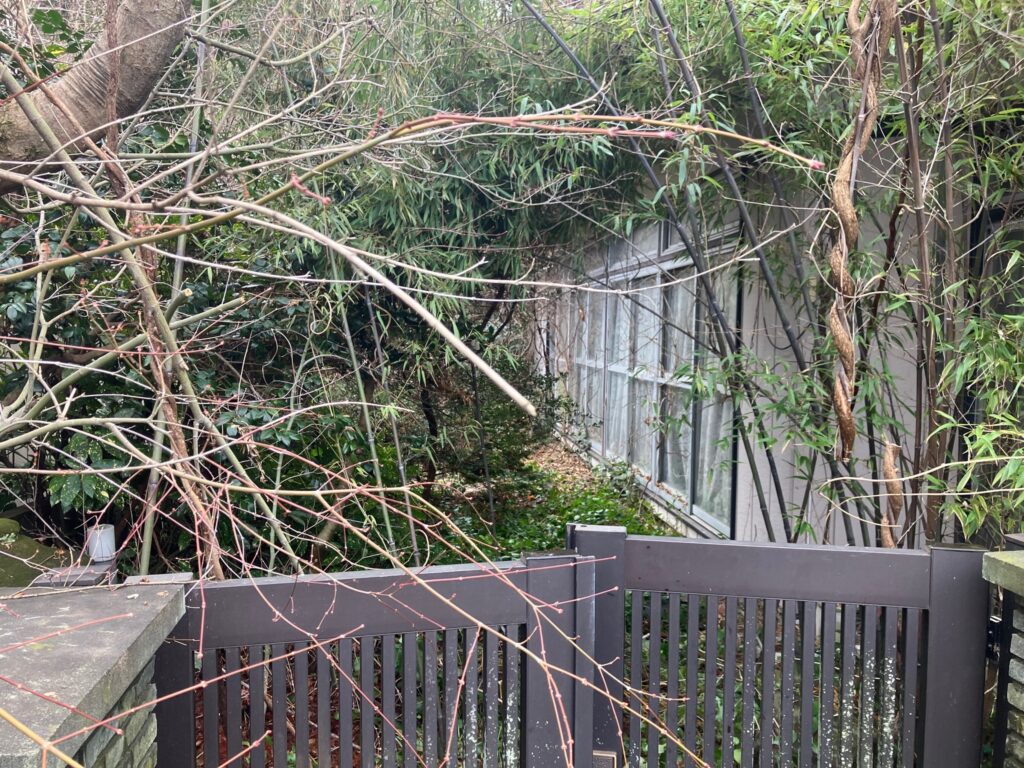 細い竹?が茂っており、電話線にかかっていたようですが、2025年12月に一部カットしてもらう予定です。