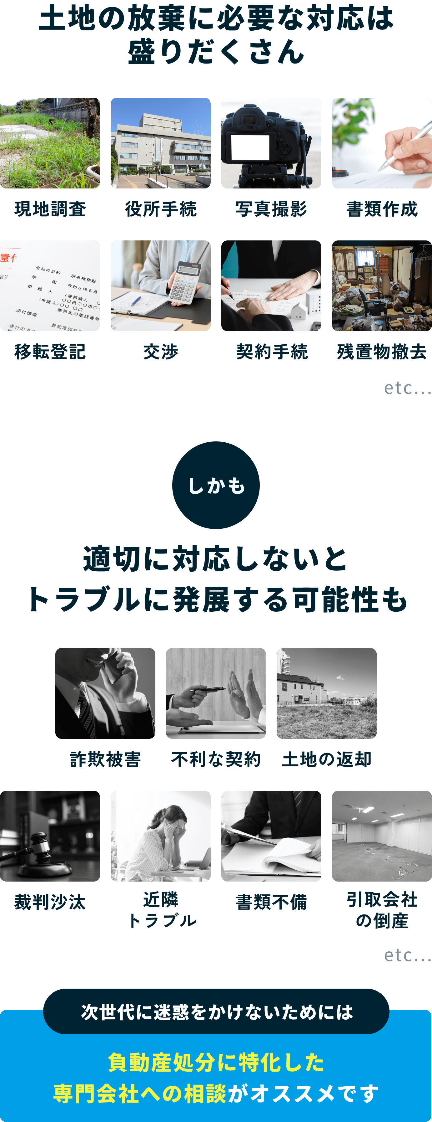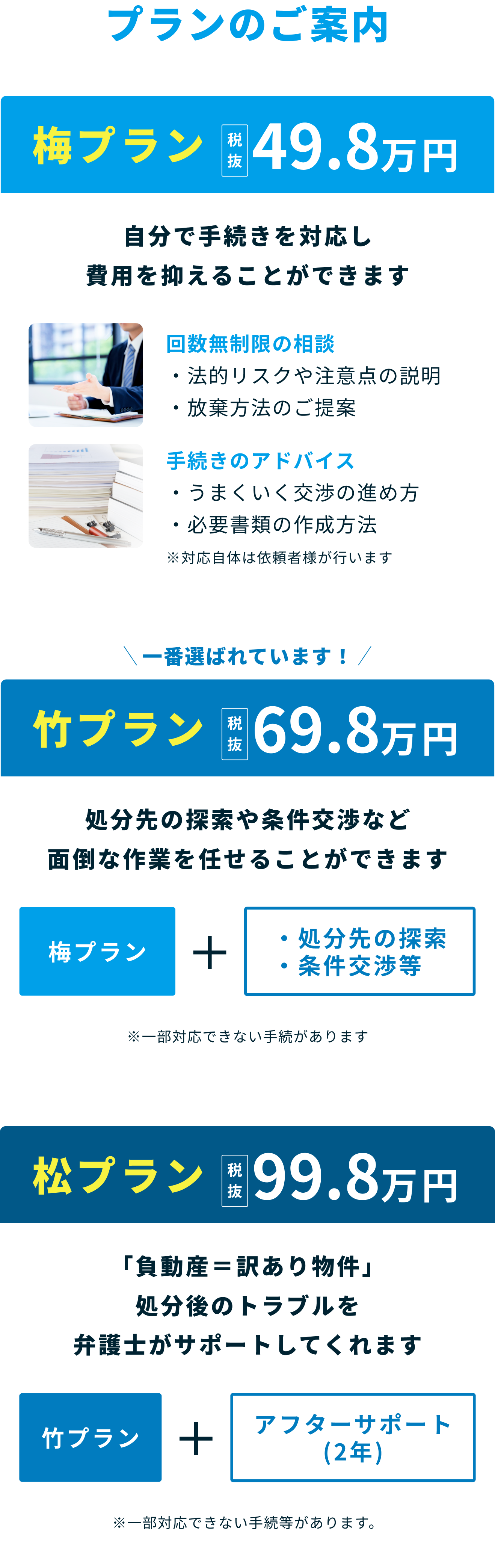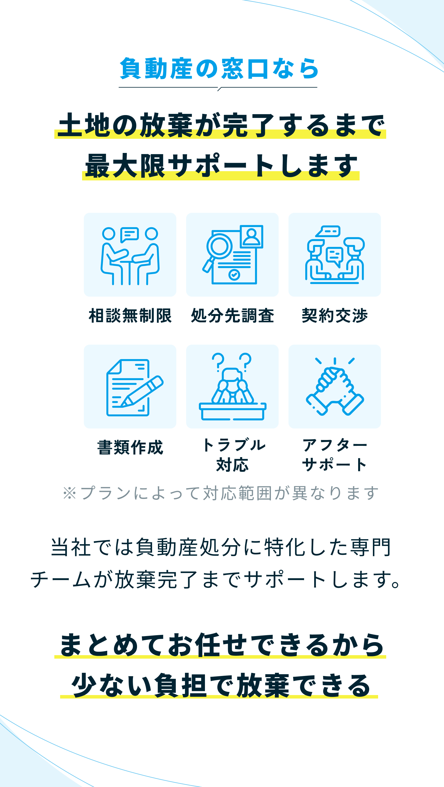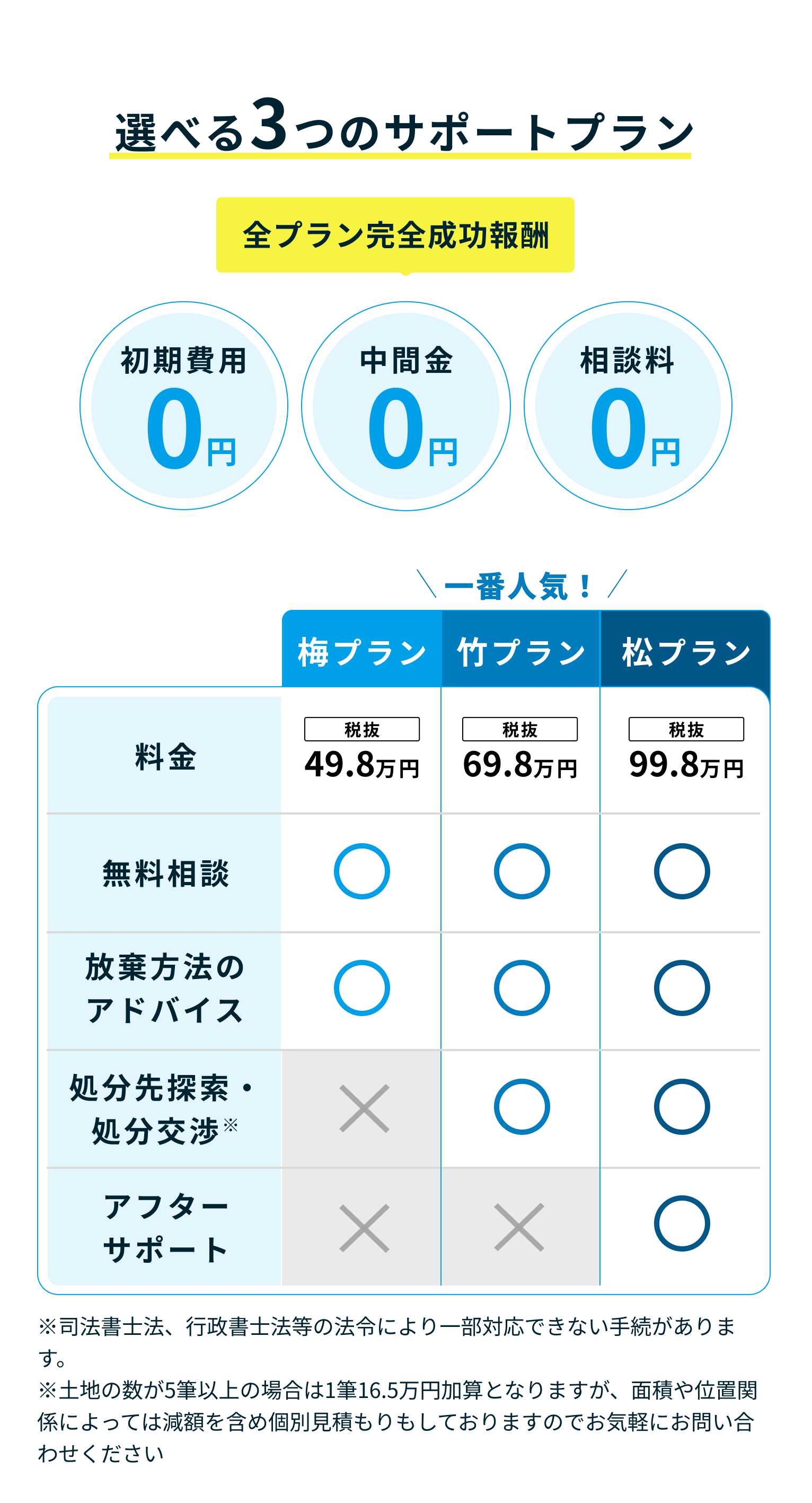 絶対にということはありませんが、①手放せるまでは一切手数料をいただきませんし、②これまで処分不可能と判断して当社から処分を中止した案件は1件もありません。
