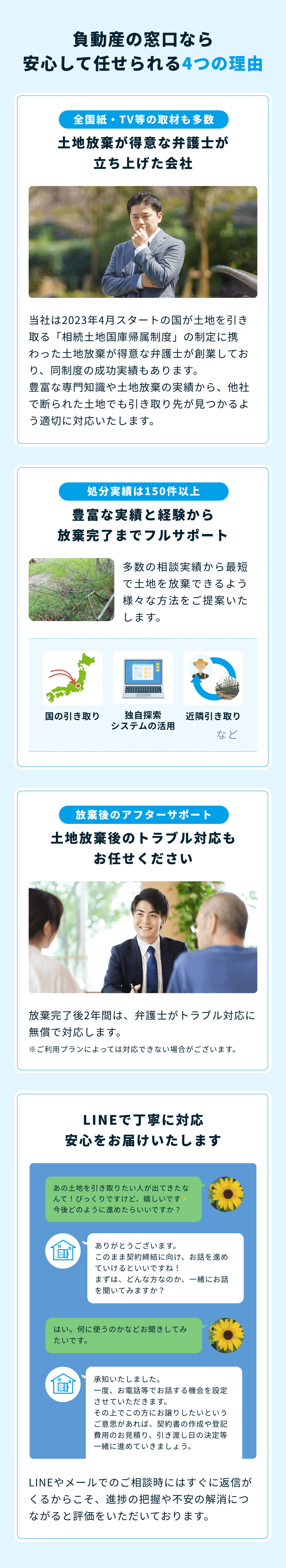 ご案内後にLINEを通じて負動産処分の進め方をご案内させていただきます。