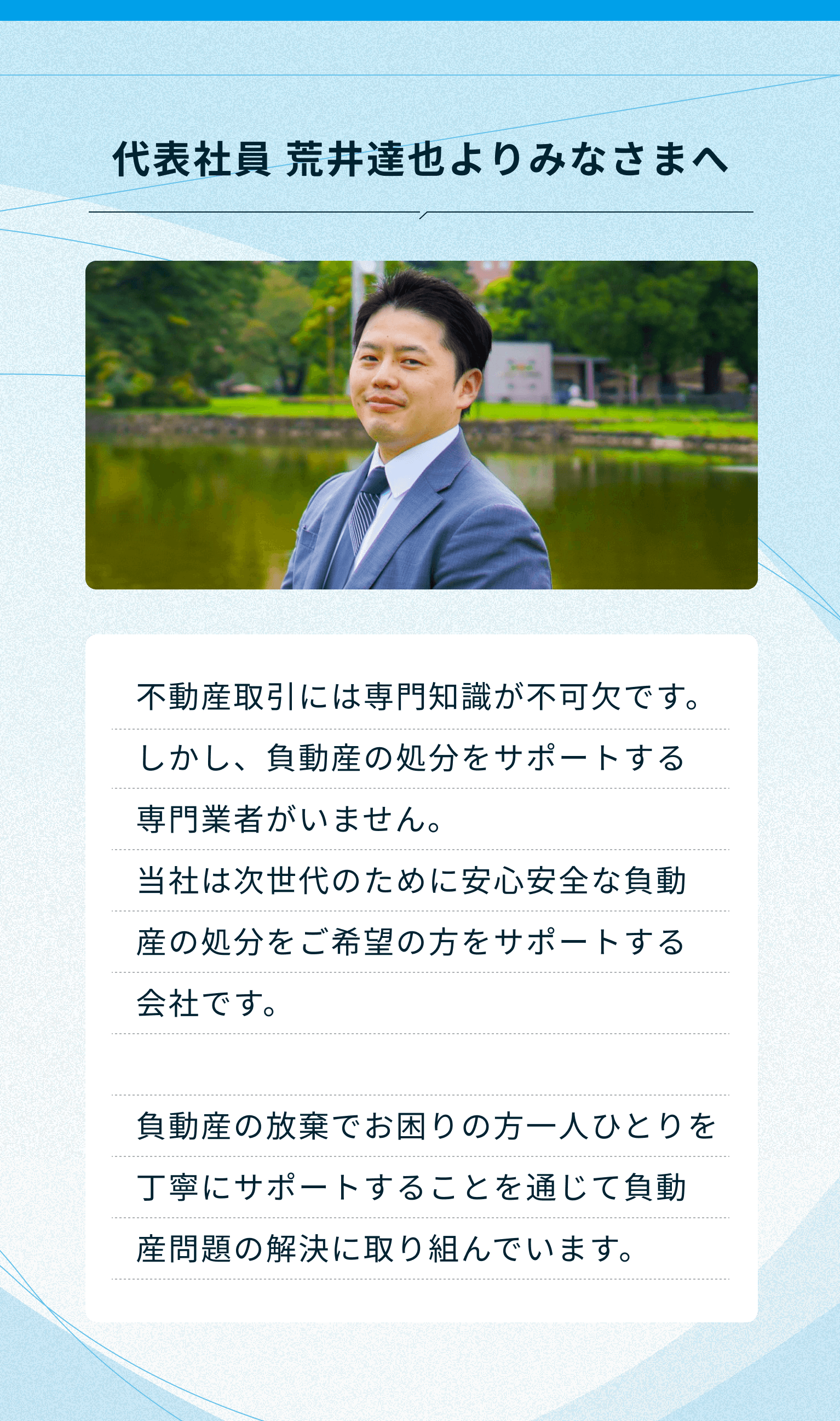 農業振興地域だったため処分に苦戦していたのですが、担当の方が農業委員会や関係者と粘り強く調整してくださり、譲渡できました。