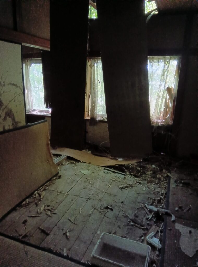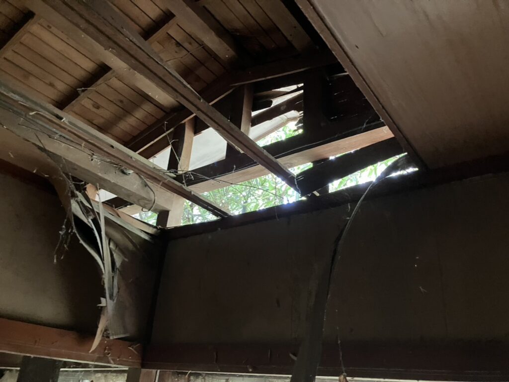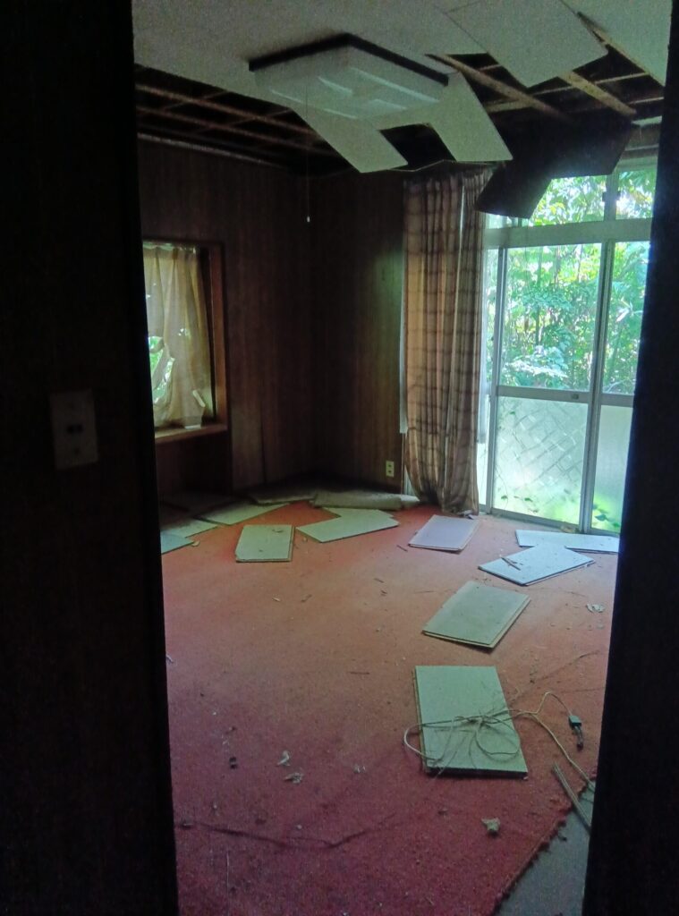 残置物はほとんどありませんが、一部のお部屋に草が侵食していたり、天井や床がはがれ、抜けていたりします。