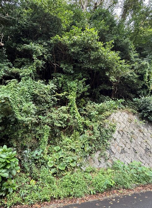 土地の境界線は概ねなんとなくわかりますが、境界標の有無は不明で、隣接地所有者との境界確認も未実施です。